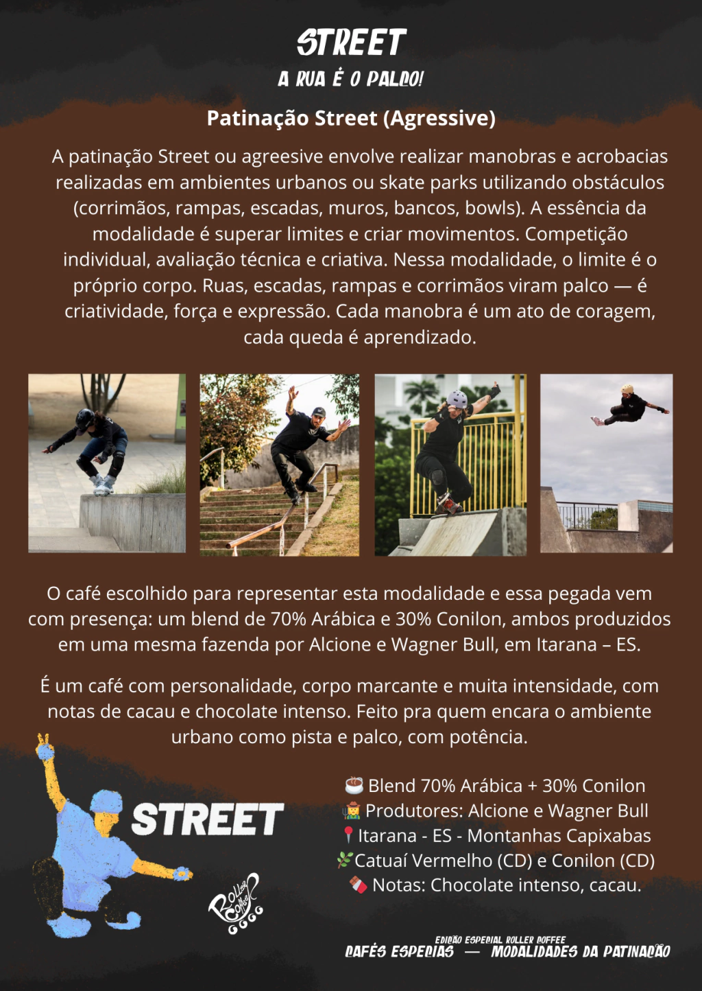 Queremos te mostrar como o café, quando bem cultivado e bem tratado, pode ter muitos perfis — leves, intensos, doces, frutados. E como cada um deles conversa com a energia de uma modalidade sobre rodas.